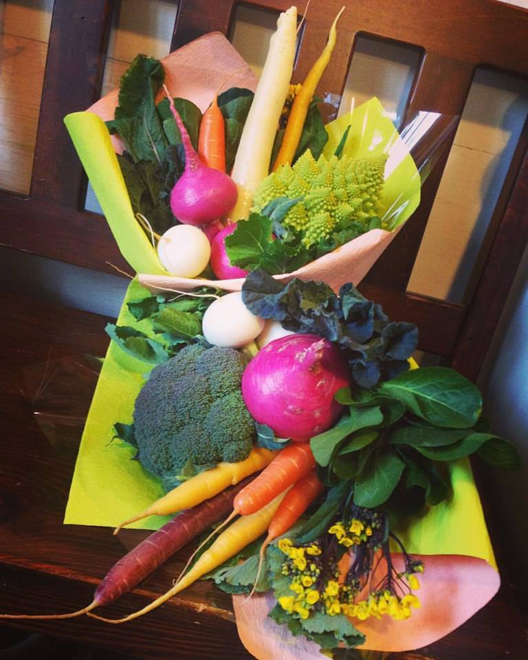 採れたての新鮮なお野菜をギフトブーケにして贈ります。