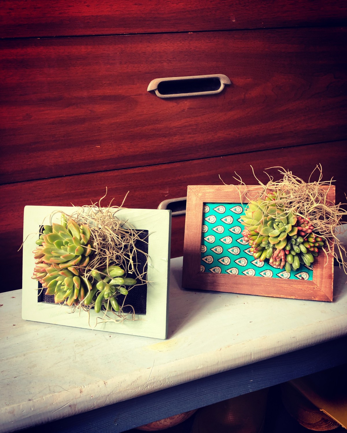 「多肉植物タブロー」と「プリザーブドフラワ キャンパスフラワー」